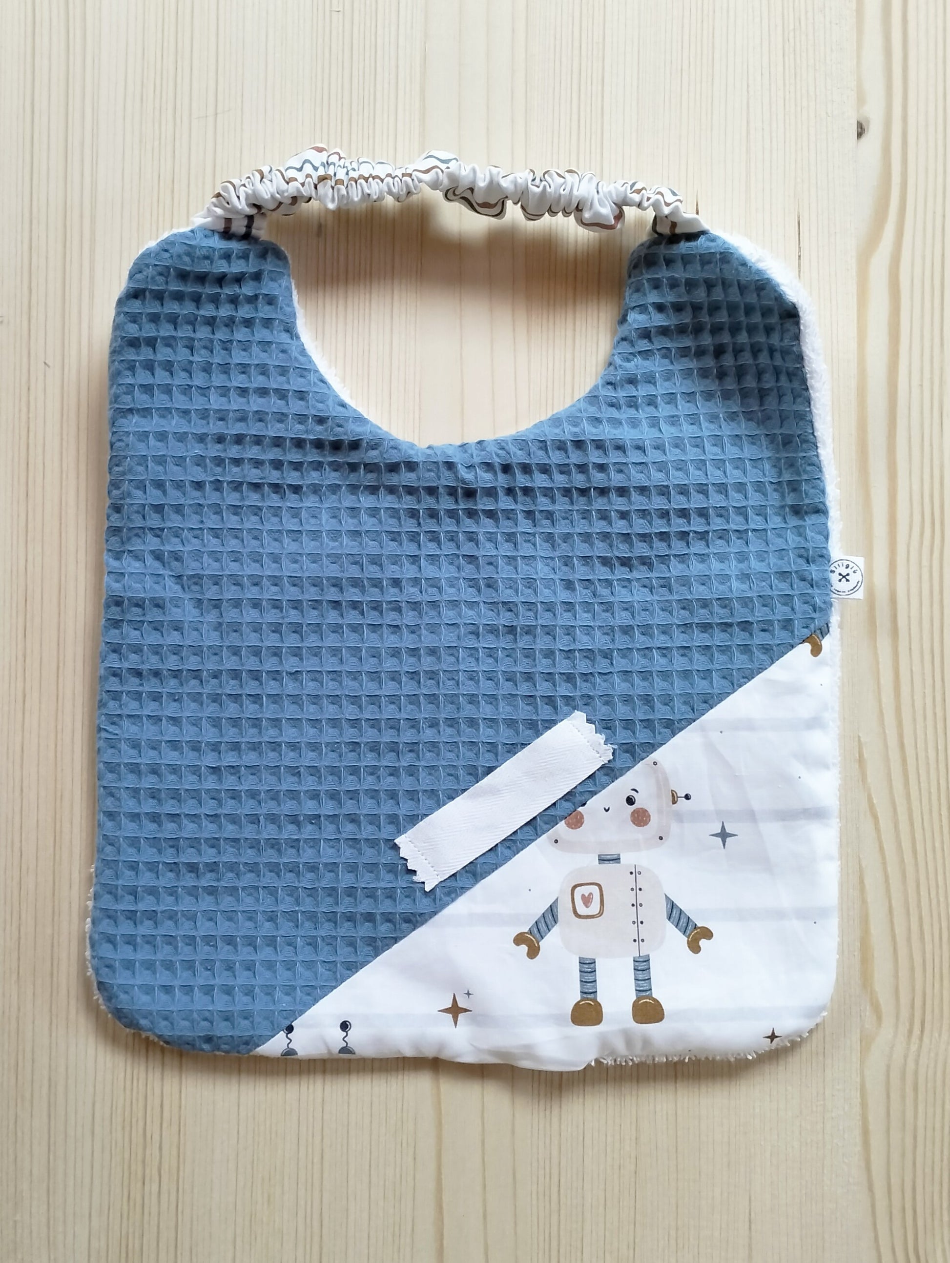 Bavaglino con elastico spugna nido d'ape sul davanti e spugna di cotone sul retro