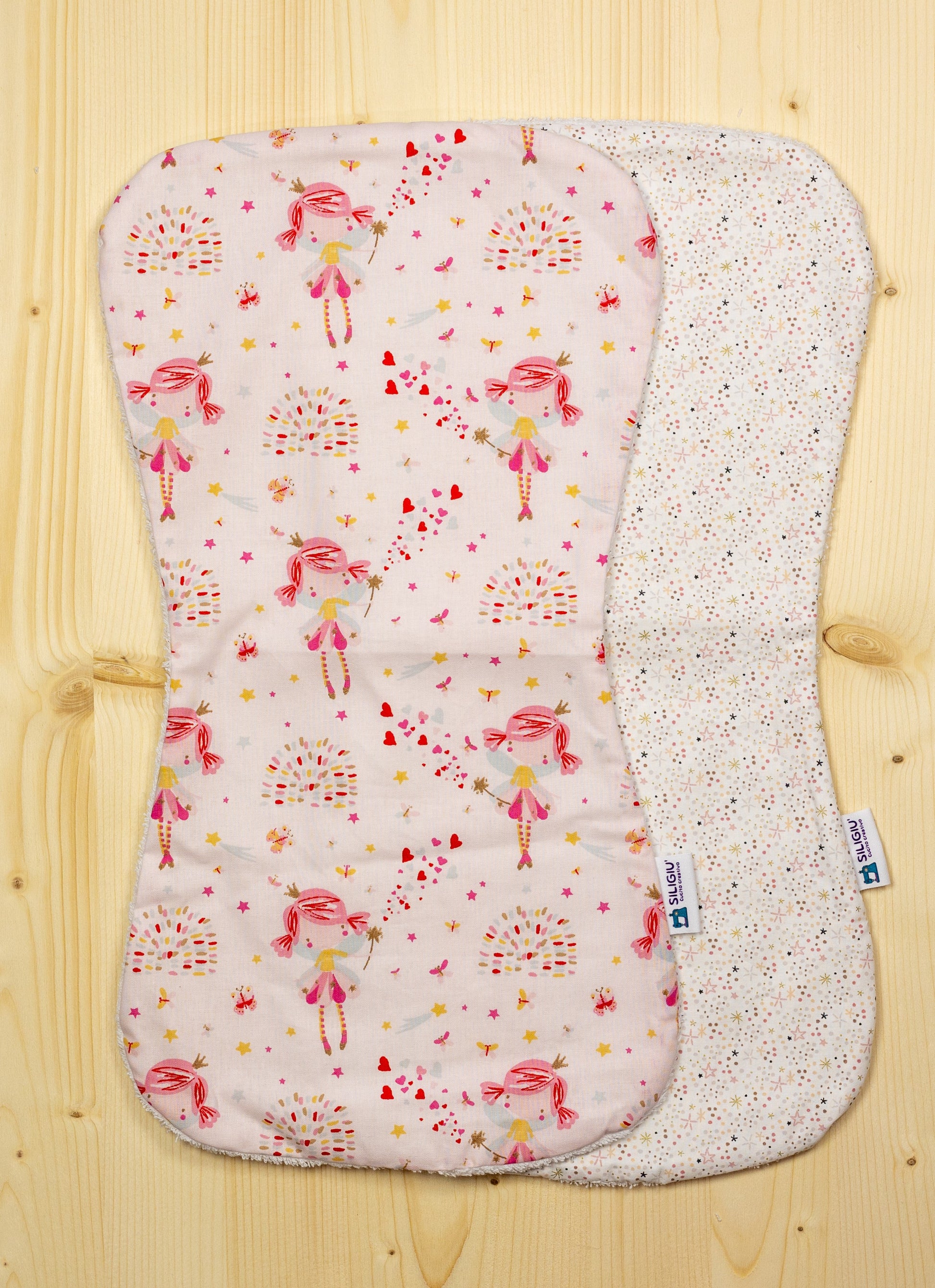 I panni per ruttino sono realizzati in doppio strato. Un lato cotone fantasia e l'altro spugna di bambù molto assorbente.
